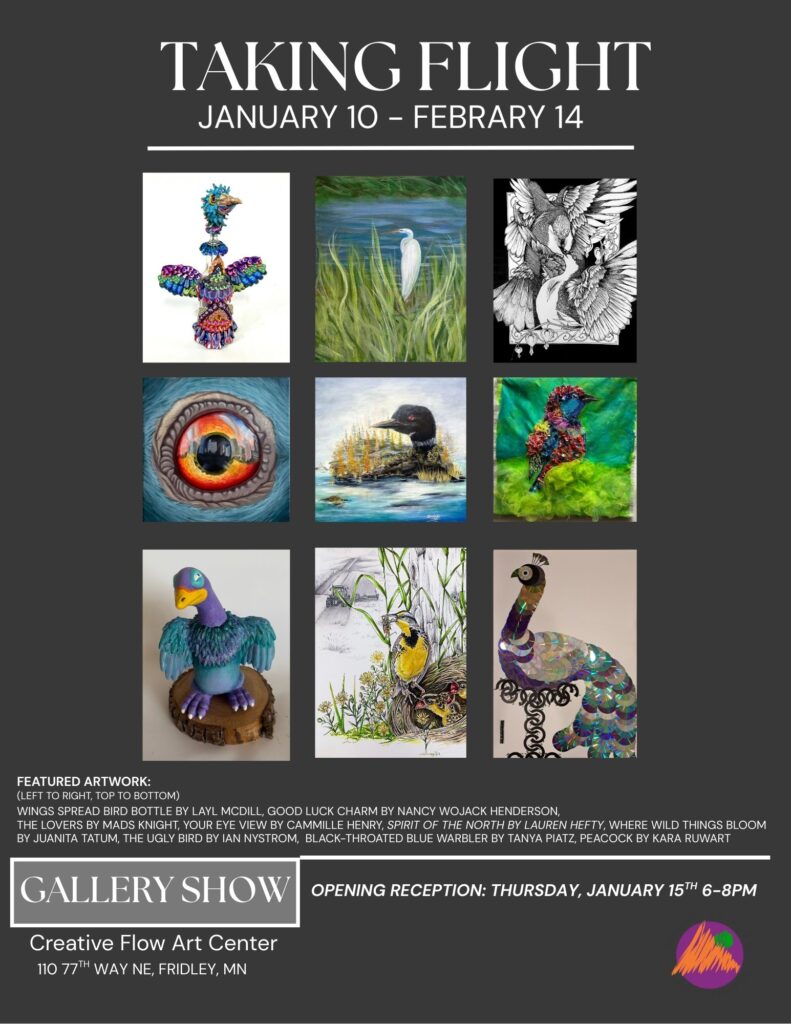 - Where: Creative Flow Art Center, 110 77th Way NE, Fridley, MN